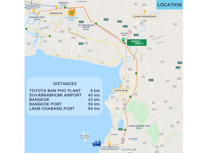 邻近城际高速公路第43公里处,接近邦巴功-北柳公路, 以及邻近TFD工业园区。